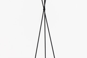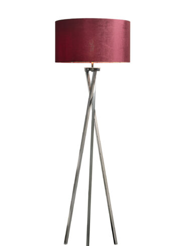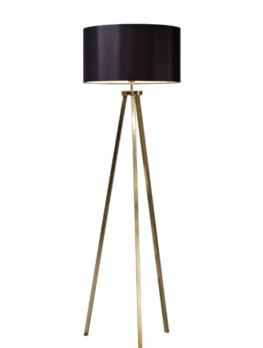 Candeeiro de pé com estrutura de pés cruzados em ferro preto mate e abajur personalizável. Um design simples que se encaixa em qualquer ambiente ou divisão.